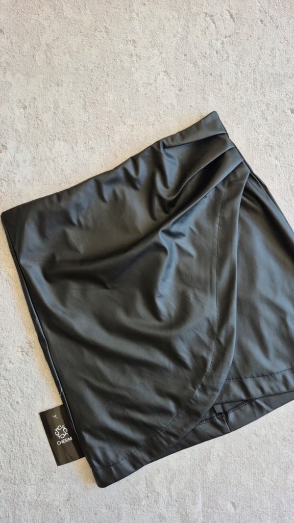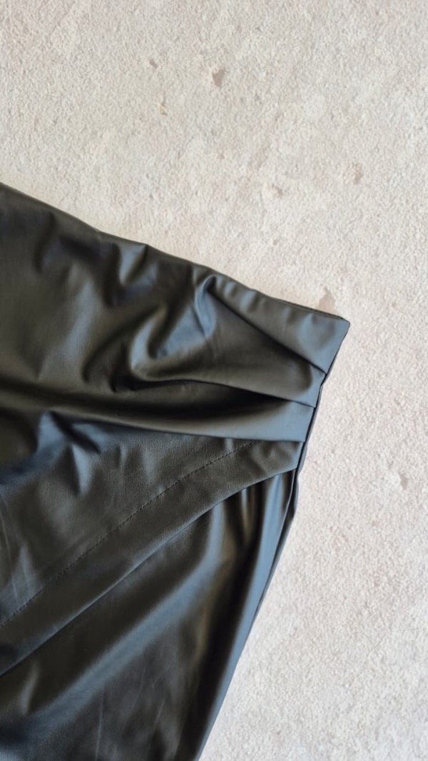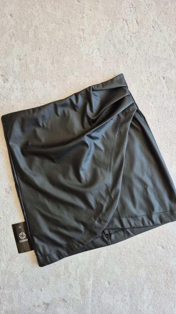 Pollera portafolio de cuerina. Tiene frunce lateral con cierre invisible.