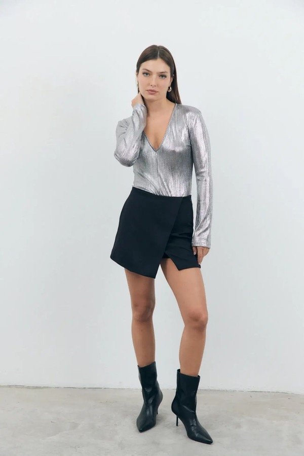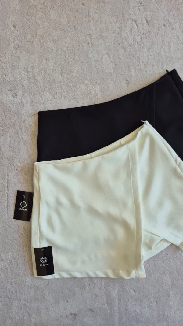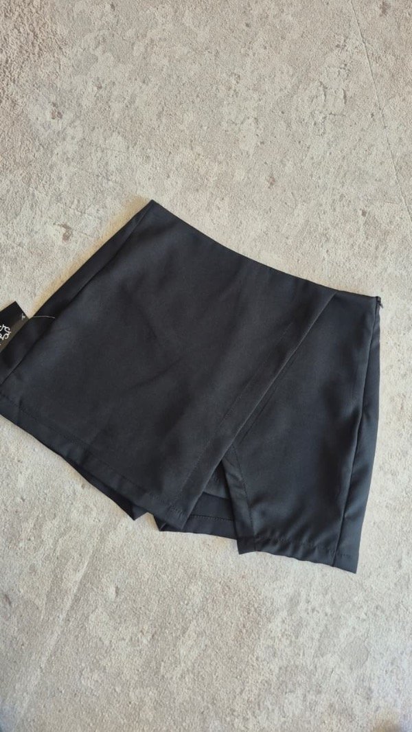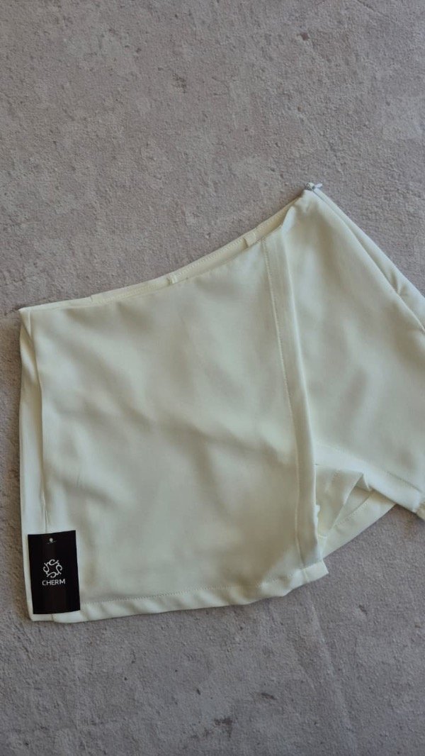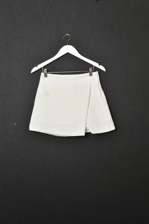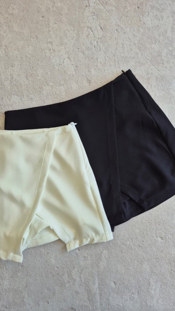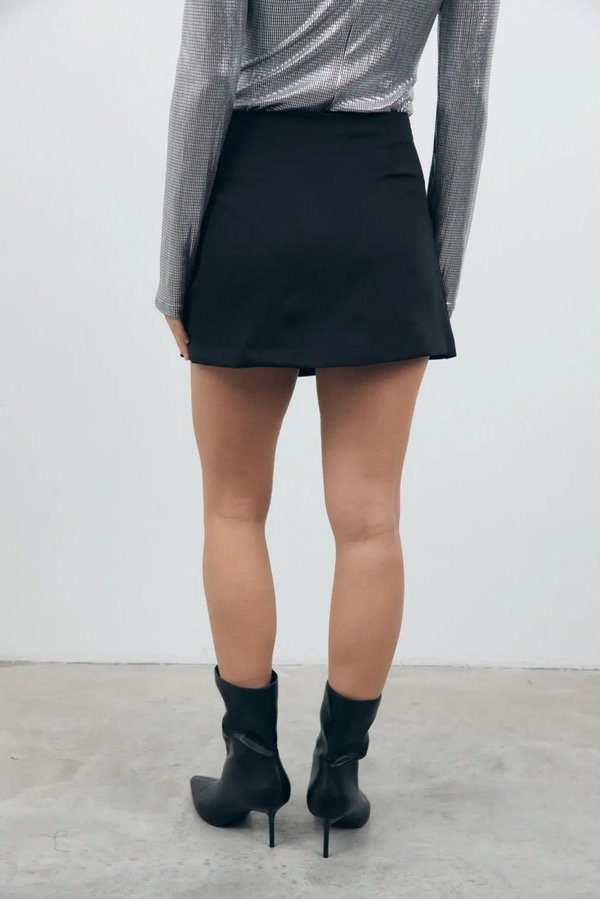 Short pollera portafolio de crepe sastrero. Tiene cierre lateral.
